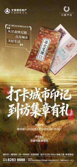 营销中心内设置的“城市印记打卡”互动区,展示了甘肃多地人文景观元素,引导客户拍照打卡并分享至社交平台,吸引了众多年轻客户群体的参与。部分客户在打卡过程中主动了解项目品牌背景,对百郦华庭的开发理念及甘肃城市文化产生兴趣,社交平台相关话题曝光量也在持续增加。通过盖章打卡的互动形式,增强了到访者对项目品牌文化的感知,累计参与打卡人数持续增加。