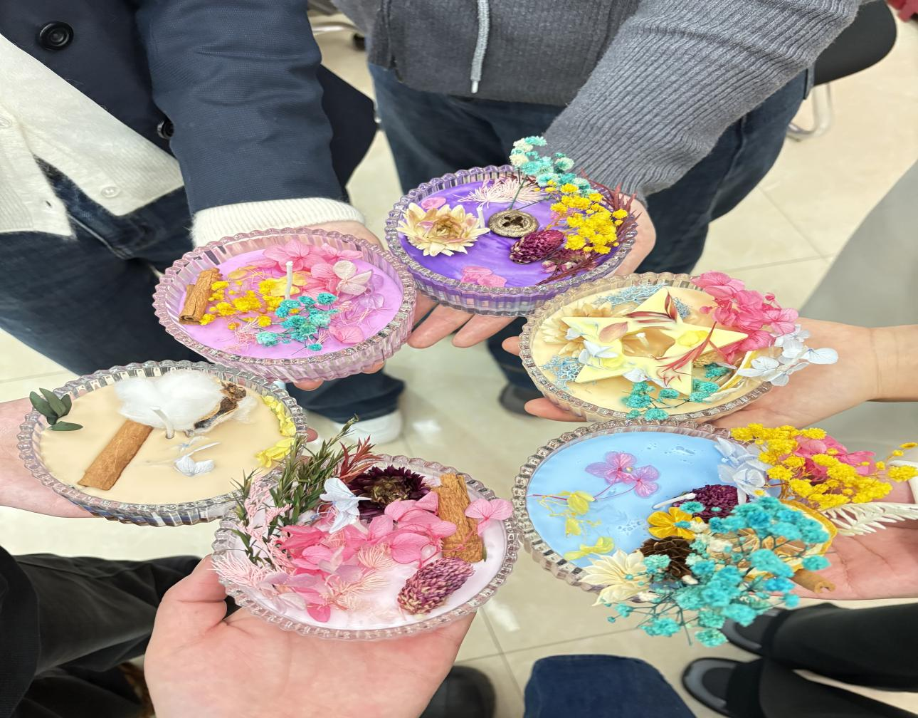 兰州分公司活动现场,大家纷纷动手尝试,挑选自己喜欢的精油,缓缓滴入融化的蜡液中,在适当位置摆放精心挑选的干花。从选材、调配精油,到注入模具、装饰蜡烛,每一步都充满了创意与乐趣。女职工们表示,这次活动不仅让她们学会了香薰蜡烛的制作技巧,更让她们在忙碌的生活中找到了片刻的宁静与放松。通过香气感受文化的魅力,进一步加深了对彼此的理解与尊重。