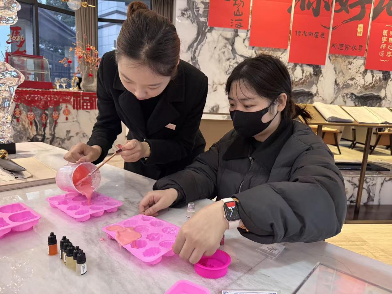 无锡公司女职工们化身“调香师”,将玫瑰、薰衣草等天然精油注入模具,纤指翻飞间,一块块色泽艳丽、造型别致的手工皂渐次成型。大家互帮互助,在欢声笑语中体验匠心之趣。此次活动不仅让女职工在忙碌工作之余放松身心,更以芬芳四溢的皂香凝聚团队温情,展现了新时代女性巧手慧心、热爱生活的别样风采。