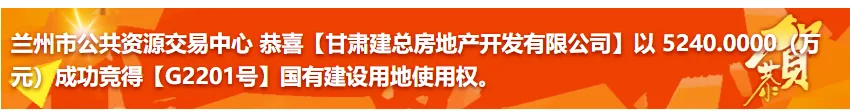 5月12日,甘肃建总房地产开发有限公司以5240万元成功竞得【G2201号】国有建设用地使用权。