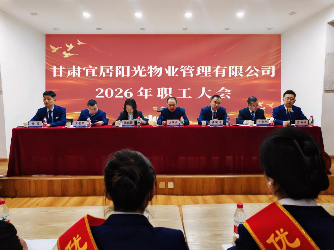 日月其迈,时盛岁新,2月10日,物业公司职工大会在公司会议室顺利召开,大会回顾总结2025年度工作,安排部署2026年目标任务。置业公司财务总监漆军应、女工主任梁晓楠应邀出席会议,物业公司全体职工54人参加会议。